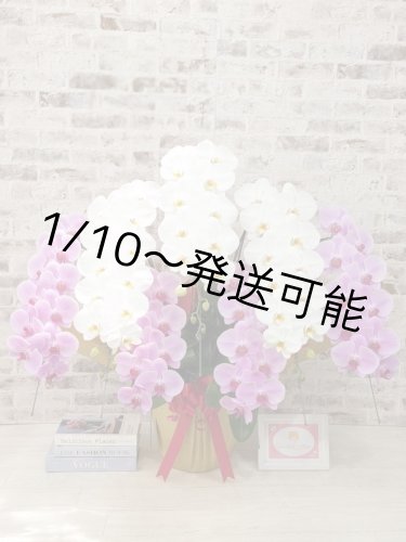 新商品!【紅白胡蝶蘭 (こうはくこちょうらん) 3本立て】*白・ピンク*(大輪)<7つの特典付き!>〈約高さ90cm、横幅55cm、奥行き40cm〉33輪以上